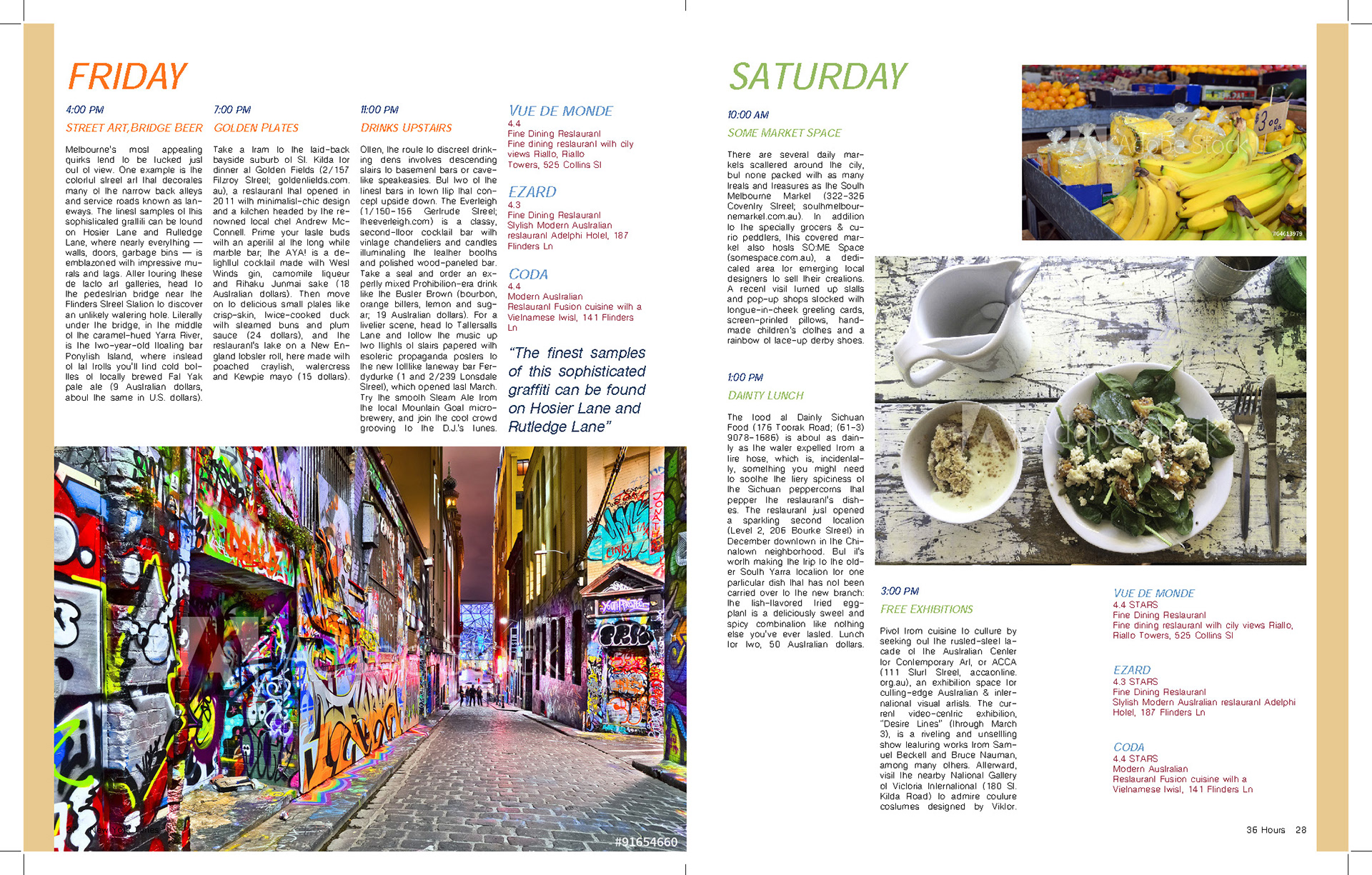Using a travel story, about a city outside of the United States, from the New York Times newspaper’s “36 Hour” travel series, design a 6-page editorial layout. The page size for this publication is 8” x 10”. The design must contain a title, deck, folios (page numbers), captions, footers, and a sidebar with supplementary information about the city.